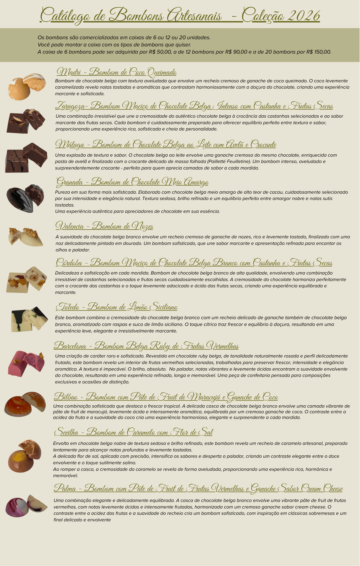 Os bombons são comercializados em caixas de 6 ou 12 ou 20 unidades.